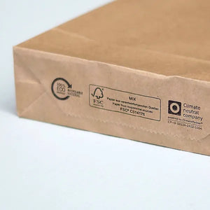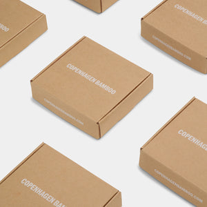 We use natural brown paper bags with self-adhesive closures and Danish-made cardboard boxes. To protect the goods as best as possible and fill the voids in the cardboard boxes, we use packaging filler made from 100% recycled paper.